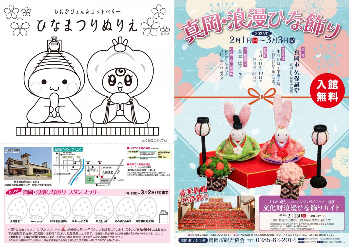 また、スタンプを集めて粗品がもらえる真岡・浪漫ひな飾りスタンプラリーも開催します。